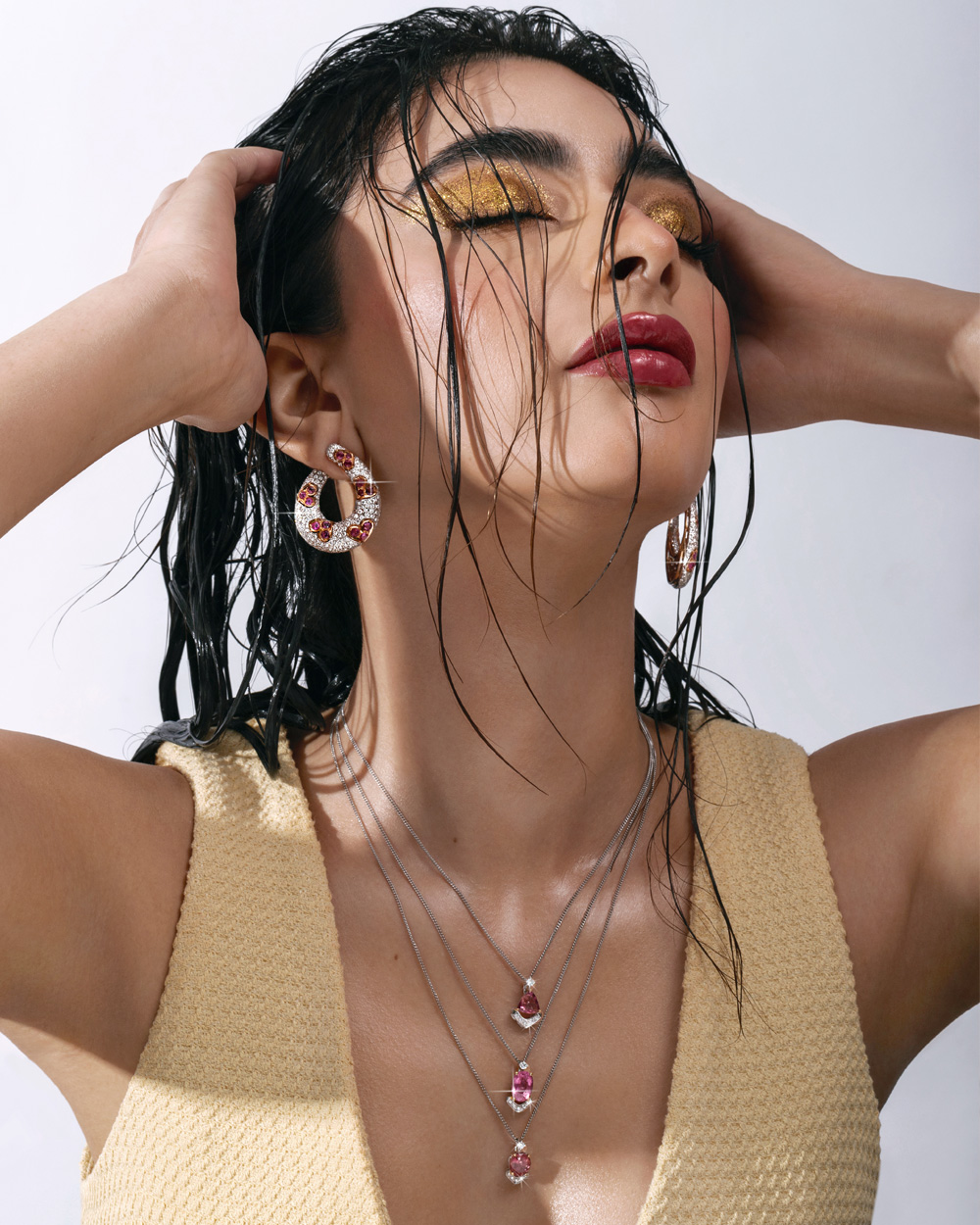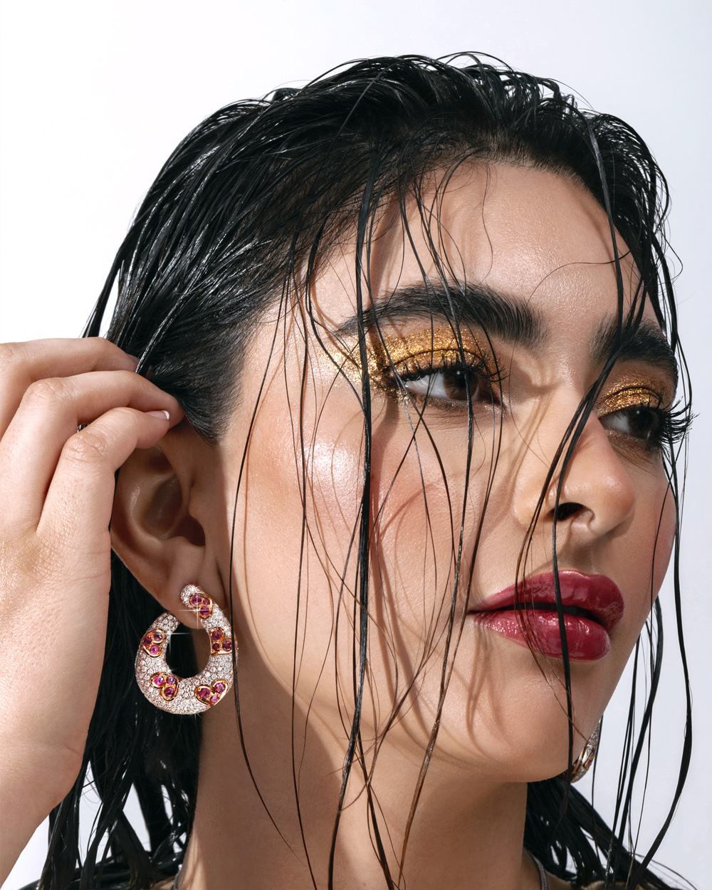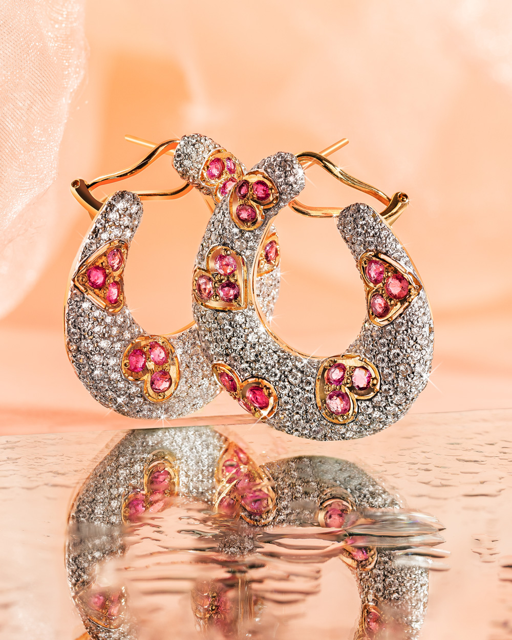 Tropic like it’s hot with our delicious Strawberry Citrus Hoops set with vibrant Pink Sapphire and studded with scintillating Brilliant Diamonds.